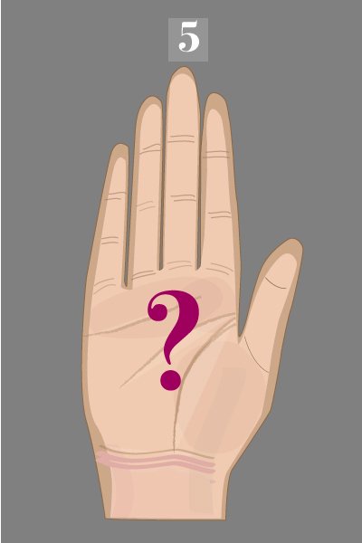 5- لديك يد مختلفة عن الأيدي الأخرى، لذا أنت لا تنتمين إلى أي فئة. من هذا المنطلق، أنت تتمتّعين بذكاء لامع جدّاً. والناس يحاولون بشدّة معرفة ما هي صفاتك الحقيقيّة، ولكنّهم لا يستطيعون أن يحدّدوا ذلك. وهذا الأمر يعزّز جاذبيّـك تجاه الأفراد من الجنس الآخر. خصوصاً وأنّ بعضاً من اللغز يكتنف شخصيّتك، وهذا سبب قويّ لشعور الآخرين بالانجذاب نحوك.
